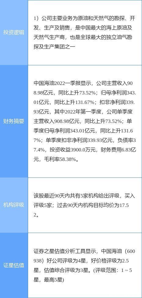 中国海油涨停收盘,收盘价17.01元。该股于13点59分涨停,未打开涨停,截止收盘封单资金为2.91亿元,占其流通市值1.14%。