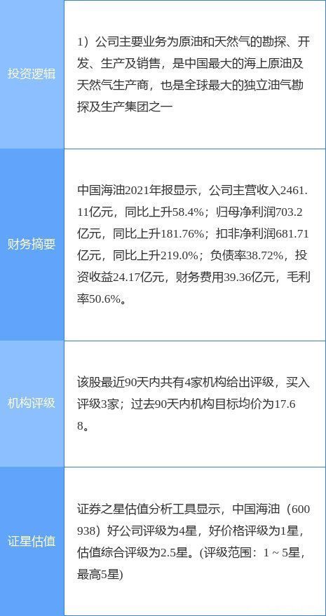 中国海油涨停收盘,收盘价14.98元。该股于13点20分涨停,3次打开涨停,截止收盘封单资金为1.98亿元,占其流通市值0.89%。