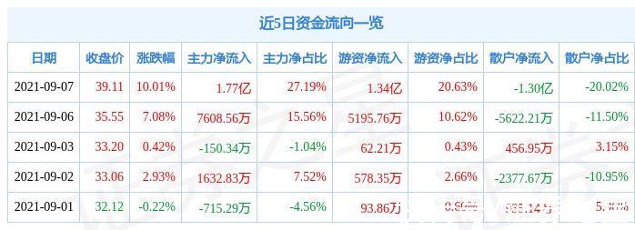 资金流向数据方面,当日主力资金净流入1.77亿元,游资资金净流入1.34亿元,散户资金净流出1.3亿元。近5日资金流向一览见下表: