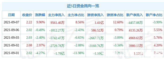 资金流向数据方面,当日主力资金净流入9561.4万元,游资资金净流入1.41亿元,散户资金净流出4457.08万元。近5日资金流向一览见下表: