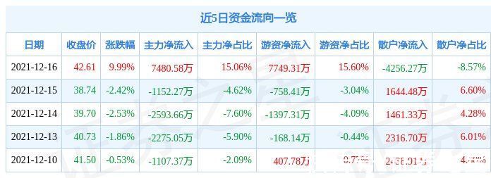 摘要:九丰能源涨停收盘,收盘价42.61元。该股于13点56分涨停,未打开涨停,截止收盘封单资金为6116.19万元,占其流通市值1.73%。 资金流向数据方面,当日主力资金净流入7480.58万元,游资资