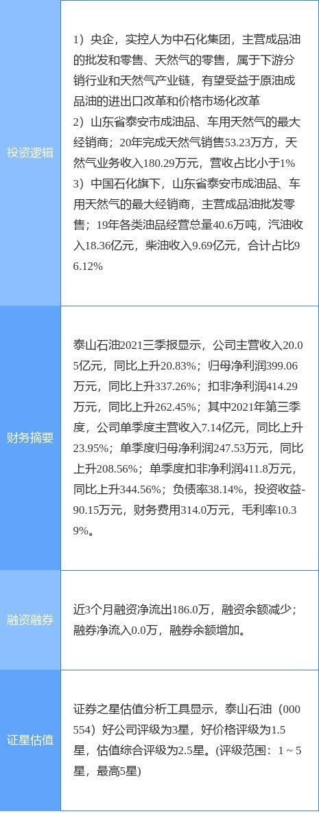 泰山石油涨停收盘,收盘价6.58元。该股于9点30分涨停,未打开涨停,截止收盘封单资金为6866.89万元,占其流通市值2.88%。