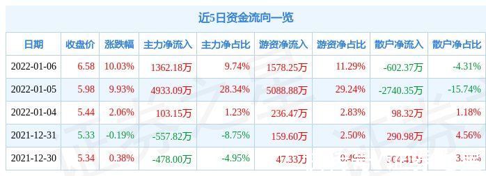 资金流向数据方面,当日主力资金净流入1362.18万元,游资资金净流入1578.25万元,散户资金净流出602.37万元。近5日资金流向一览见下表: